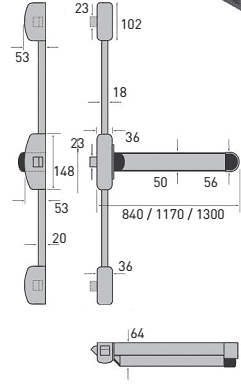 40TCPH3550320. STRAND PH355 Three Point Panic Bolt, Silver